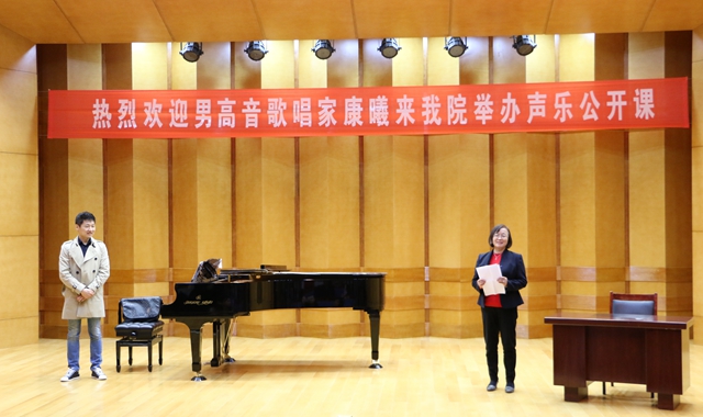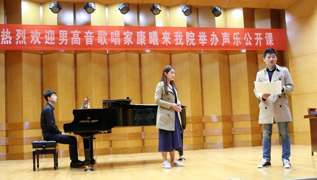 活动伊始,王淑霞对康曦教授的到来表示热烈欢迎,并向现场观众介绍了康曦教授所取得丰硕成果。她希望在座的师生能抓住此次难得的机会,认真学习,虚心请教,在音乐的道路上不懈努力,走出自己的风采。随后,康曦教授用真挚恳切又不乏幽默的语言跟大家分享了自己的声乐学习之路和声乐学习过程中的经验,并从歌唱时的语言、呼吸、腔体等方面进行了细致讲解。第二天,康曦教授为大家呈现了一节节精彩的声乐示范课,根据学生演唱的不同作品和声音特点,逐一做了深入的剖析和点评,并亲自演唱示范,为大家树立了更直观、正确的声音概念和听觉判断,极具感染力的讲解及精湛的示范演唱赢得了在座师生的热烈掌声,使学生受益匪浅。本次活动在全场经久不绝的掌声中圆满结束。