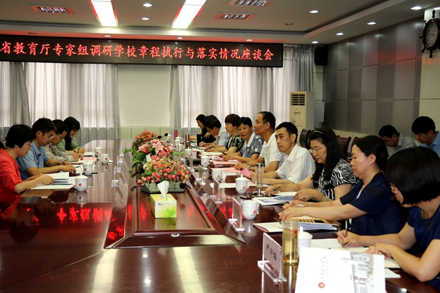 专家组还就学校章程执行与落实情况分别召开职能部门、教学院部负责人座谈会,教师代表座谈会、学生代表座谈会,深入社会与法学院调研,详细了解学校在章程制定、执行与落实情况,查阅与章程有关的配套制度、党委会纪要、校长办公会纪要、学术委员会纪要、学生申述案例材料等。专家组充分肯定了学校章程在明确办学定位、完善治理结构、促进特色发展、推动依法治校等方面的作用,并就今后章程执行与落实提出了中肯意见和建议。