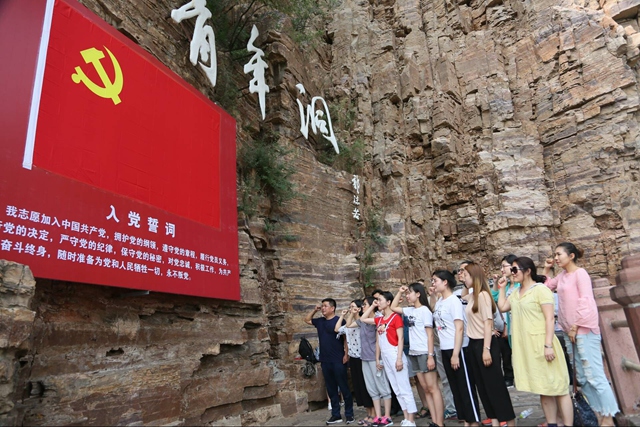7月1日,党总支组织师生党员奔赴河南省林州市参观红旗渠“青年洞”、“妇女突击队”、“劈开太行山”、“创业洞”等,实地感受引漳入林工程的伟大,10年建设的艰辛。在红旗渠纪念馆,观看红旗渠建设过程的历史照片和测绘资料,听取讲解20世纪60年代,林县人民在极其艰难的条件下,从太行山腰凿建“人工天河”的艰苦创业历程,接受“自力更生,艰苦创业、自强不息、开拓创新、团结协作、无私奉献”的红旗渠精神教育,面对党旗,重温入党誓词,进一步坚定党员理想信念,增强党员团结奋斗丶拼搏进取、争先创优的工作动力。