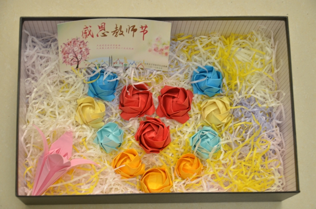 为感谢教师的谆谆教导,学校大学生茶道艺术团在图书馆,开展“百茶飘香,感恩女院——向恩师奉上一杯茶”主题茶会,为老师们带来茶艺和书法表演等特别活动。为辛勤付出的老师奉上一杯敬师茶,在表达浓浓心意的同时,传承了中华优秀传统文化。茶味清香,古韵悠长,尊师重道,不忘师长。在教学楼,同学们组织“手折玫瑰念师恩”活动,学生将一朵朵手折的玫瑰赠送给老师,表达心中敬意。伴随着“老师您好,祝您教师节快乐”,一句简单的问候,一份浓浓的祝福,都浓缩在了一朵朵饱含心意的纸玫瑰中。