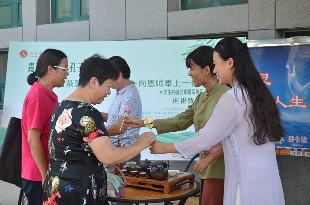 9月7日下午,在第33个教师节来临之际,校学生会、校社团联合会、大学生茶道艺术团等学生组织自发开展“师恩难忘”庆祝教师节系列活动。