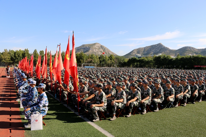 校长盛国军代表学校向全体新同学表示热烈欢迎,向承担本次军训任务的齐鲁工业大学大学生教官示范团表示衷心感谢,并与全体新同学做了“三个约定”。一是不忘初心,共同筑梦。希望同学们将自己的梦想与学校建设“百年女大”的梦想结合起来,为实现“女大梦”贡献力量。学校也将为同学们实现个人梦想提供资源、搭建平台、铺路设桥。二是不负韶华,静心读书。希望同学们始终牢记修身、求知的本分,在自己最好也是最关键的成长期,专注学业、潜心修为,尽快完成从学知识到长见识、从被动学习到自主学习、从专注标准答案拼分数到善于探究性学习强能力、从主要学习应考科目到广泛涉猎各类知识领域的转变,快乐充实地度过这一段求学时光。三是不断尝试,寻找更好的自己。希望同学们在自主的时间里,能够积极发掘和拓展兴趣爱好,通过阅读来陶冶情操,通过运动来强身健体,通过艺术来愉悦精神,在不断尝试中努力寻找更好的自己。