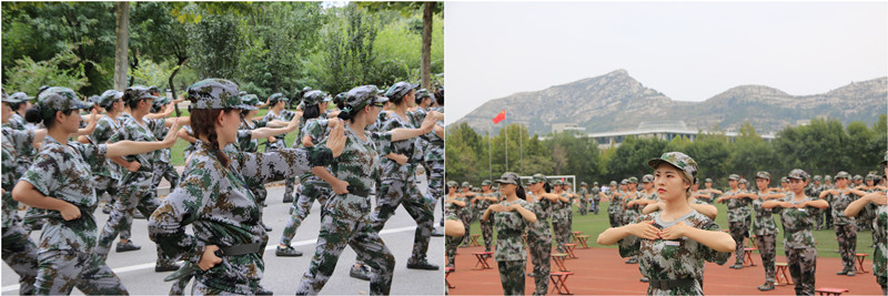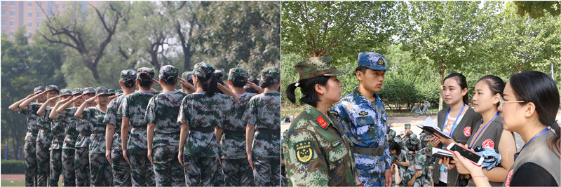 犹记那年,绿油油的草地上,朝气蓬勃的我们整齐的站着军姿,有力的踏着正步,喊着响亮的口号,唱着激昂的军歌。外国语学院16级商务英语专业的刘绍晶同学回忆起自己上一年的军训时光,激动地说:“军训结束时,男生团充满气势的打拳表演和女生整齐一致的‘马扎操’给自己留下了深刻的印象。虽然我们当时都是初入大学,但经过锻炼也能够有如此惊艳的表现,这也说明要相信自己,大家都潜力无穷。教官虽然是个南方女孩,但是女本柔弱,为军则刚,从她的身上我们也意识到作为一名新时代的女性,练就专业本领、提高身体素质的同时,还要有自强的意识”。军训只是大学生活的一个开始,一段小插曲,但是,军训中学会的东西将会使我们终身受用。
