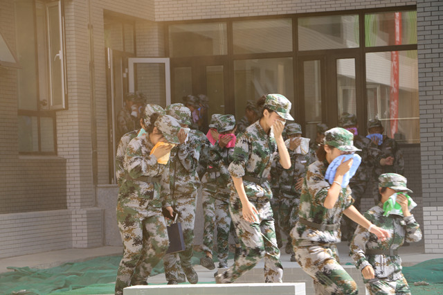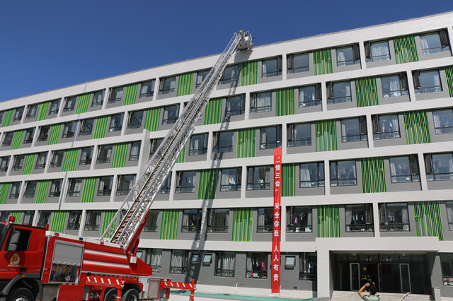 演习场景设计为宿舍楼内突发火灾,楼内管理人员在发现火灾险情后,第一时间到起火现场查看并做好初步的应急处置。随后通知保安迅速拨打火警电话119,消防人员赶到现场,组织现场工作人员及时疏散新生等工作,采取专业、科学、立体的救援行动,协同配合,发挥装备的最大效能,使“火势”得到了有效控制,并最终得以成功“扑灭”。