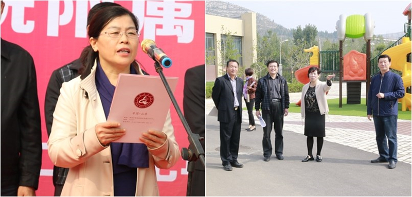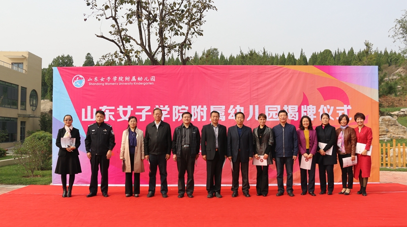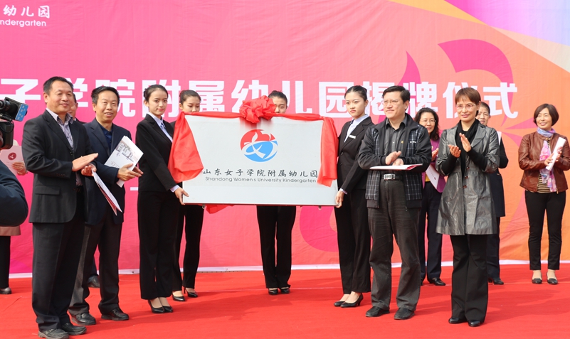 仪式上,盛国军、任泽焕、王华、马训生共同为山东女子学院附属幼儿园揭牌。