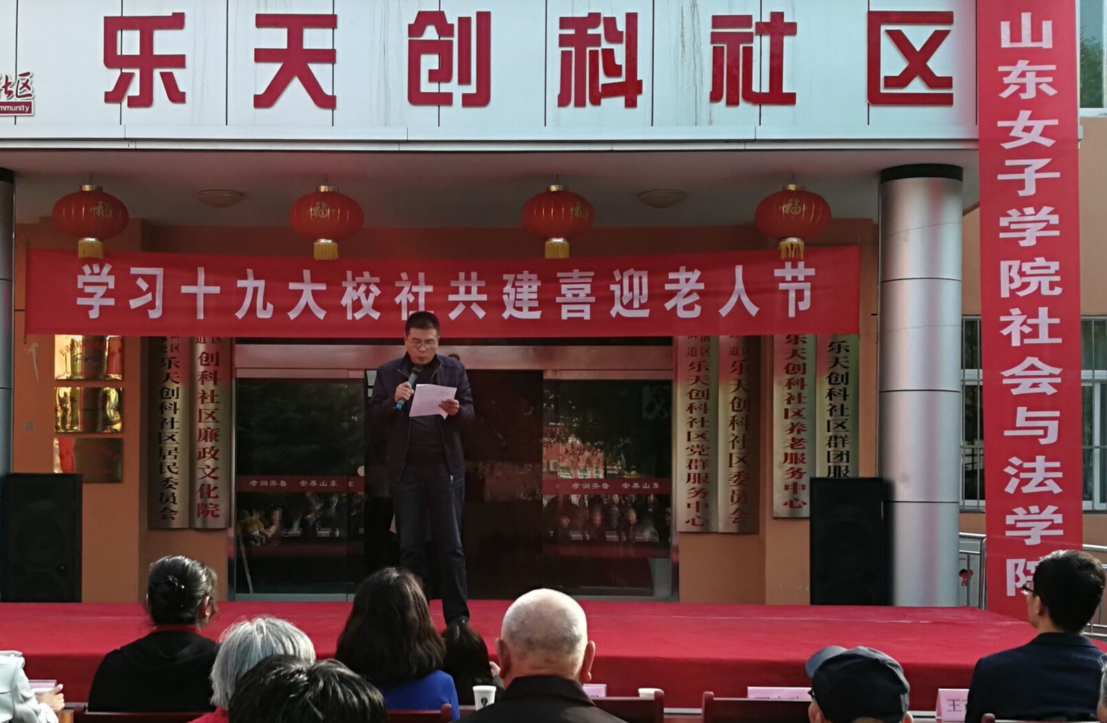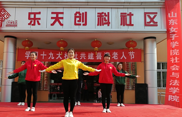 2017年10月28日,正值一年一度的重阳节,济南市长清区乐天创科社区人声鼎沸、欢声笑语、热闹非凡。由山东女子学院社会与法学院与乐天创科社区联合举办的“走进社区”系列敬老爱老活动正在这里举行,100余名老年服务与管理专业师生和社区200余名老人欢聚一堂,共庆佳节。