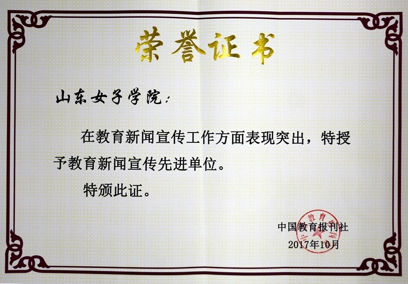 2017年,党委宣传(统战)部牢牢把握正确的舆论导向,围绕中心、服务大局,讲好女院故事、传播女院声音,积极拓展与各主流媒体联系,为学校事业发展营造了良好舆论氛围。2017年在中国教育报、山东教育报、山东教育电视台、齐鲁晚报等媒体刊发了山东省大学生中华传统茶艺表演大赛、鲁台“女性与家庭教育”学术研讨会、山东省青少年素质教育高峰论坛等特色亮点工作70余篇。