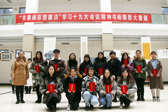 “书墨画彩塑廉洁”书画摄影大赛展进一步教育引领全校师生,深入学习贯彻落实党的十九大会议精神,营造风清气正,积极进取,团结向上的校园文化,凝心聚力,全面落实学校二次党代会提出的奋战略目标和具体任务,按照“十三五”规划,加快综合改革,为建设应用型地方特色名校贡献青春和力量。