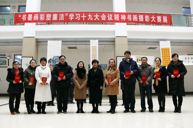 12月29日,学校纪委在博文楼一楼大厅举办“书墨画彩塑廉洁”学习十九大会议精神书画摄影大赛展。学校党委书记郭翠芬、纪委书记黄晓彦出席展览并为获奖师生代表颁奖,学校纪委委员、各院部处室党政负责同志及师生代表一起参观了“书墨画彩塑廉洁”学习十九大会议精神书画摄影大赛展。
