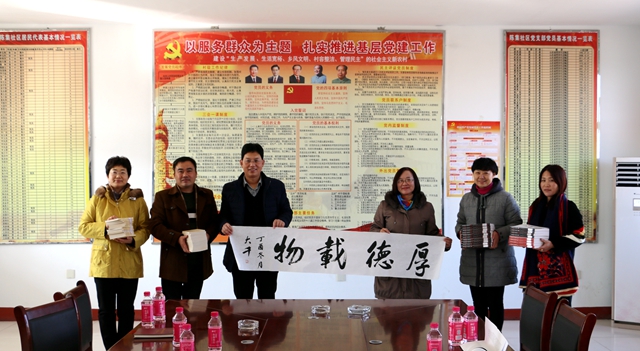 学校向陈集社区文化站赠送书籍和书法作品