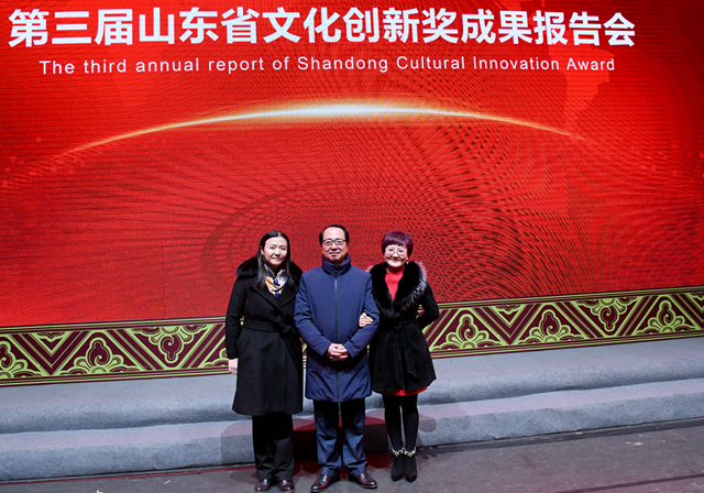 近日,第三届山东省文化创新奖成果报告会在济南历山剧院隆重举办。省政府办公厅二级巡视员张连三,省文化厅厅长王磊、二级巡视员付俊海等出席活动。我校科研处处长李缨,音乐学院院长宋小霞受邀参会。第三届省文化创新奖获奖代表,各市文化广电新闻出版局、省有关单位、驻济高校、省直文化系统单位负责同志,省暨驻济新闻单位代表,部分文化艺术工作者代表参加报告会。成果报告会由省文化厅副厅长李国琳主持,王磊厅长会上发表讲话。