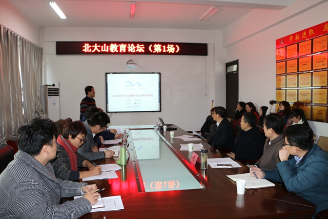 3月8日下午,北大山教育论坛于博雅楼201室正式开讲。校长盛国军出席论坛。学校发展规划处、国际交流处、教育学院相关负责人及专业教师参加论坛。首场论坛主讲人为教育学院王录平博士。论坛由教育学院院长董吉贺主持。