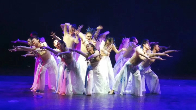 舞蹈作品《天空》为当代舞女子群舞,其表演者是来自学校2014、2015、2016级音乐学专业民族民间舞方向的学生,音乐学院舞蹈教研室教师朱济光和于佳担任编导及排练老师。该作品挖掘提炼山东民间舞蹈极富典型性的动作素材,结合现当代编舞技术技法,将织梦、破梦、回梦贯穿作品始终,结合编导自身的情感体悟,折射出当代社会人的生存境遇,具有一定现实意义。经过近半年的细心打磨与精心雕琢,《天空》在全国性的大学生艺术盛宴中绽放异彩,为学校和山东省争得了荣誉。这场盛大的艺术盛宴,让明升赌场的学生成为本次艺术展演活动的受益者,给学生提供了丰富多彩的艺术实践和艺术观摩活动。