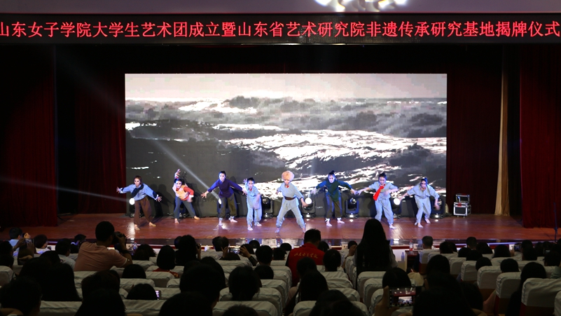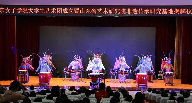仪式结束后,与会人员一同欣赏了山东省非遗项目展演及学校大学生艺术团表演的文艺节目。由非遗专家表演的山东快书、山东琴书、吕剧等淋漓尽致地展现了中华优秀传统文化的独特魅力,由大学生表演的鼓乐、表演唱、舞蹈和由青年教师带来的古琴演奏和歌曲充分展现了新时代广大师生进取创新、昂扬向上的精神风貌。大学生艺术团成立暨省艺术研究院非遗传承研究基地的建立将进一步发挥以文化人的功能,助力学校人才培养,服务地方经济文化发展,繁荣齐鲁大地的文化艺术事业。
