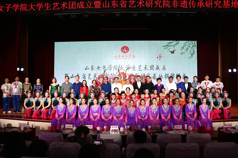 5月15日上午,“山东女子学院大学生艺术团成立暨山东省艺术研究院非遗传承研究基地揭牌仪式”在学校图书馆二楼报告厅隆重举行。山东省文化厅二级巡视员刘敏,山东省艺术研究院院长、山东省戏剧创作室主任、山东省戏剧家协会主席张积强,山东省艺术研究院戏剧曲艺类非物质文化遗产保护传承研究所所长、山东省曲艺家协会副主席郭学东,济南市吕剧院副院长王鸽、陈涛,山东省艺术研究院相关部门的领导和非遗艺术家,学校校长盛国军、副校长贺兴利、纪委书记黄晓彦出席了活动。学校相关部门、单位的负责同志和师生代表380余人参加了仪式。仪式由学校党委副书记王淑霞主持。