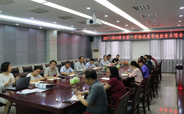 5月17日,学校试卷专项检查反馈会在第三会议室举行,副校长刘正林出席会议并讲话,教务处、评估处、招生就业处及各二级院(部)相关负责同志参加会议。