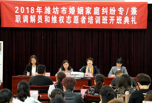 本次婚姻家庭纠纷专/兼职调节员和维权志愿者培训班由潍坊市妇联组织,为期5天,参加培训学员60人。培训班由学校继续教育学院负责联络、筹备和周密安排,服务工作得到了学员们的高度评价。