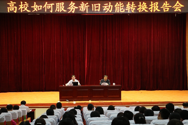为深入贯彻落实省委省政府明升体育:新旧动能转换重大工程的决策部署,5月22日下午,学校邀请山东省人民政府研究室原巡视员聂炳华研究员在图书馆二楼报告厅作题为“高校如何服务新旧动能转换”的辅导报告。报告会由校长盛国军主持,全校副科级以上干部、教研室主任、高级职称人员参加了报告会。