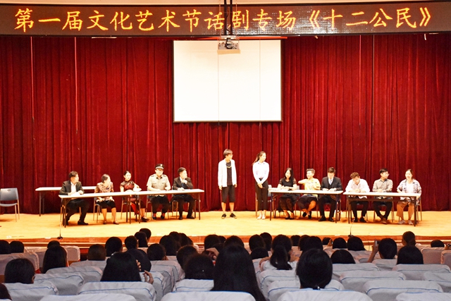 学校特邀山东师范大学天槐话剧社于5月19日上午在图书馆二楼报告厅倾情演出话剧《十二公民》。演员们扎实的台词功底和精彩的演出博得现场观众的阵阵掌声,整台话剧体现出的法治精神和公民责任也使观众们受到教育和洗礼。