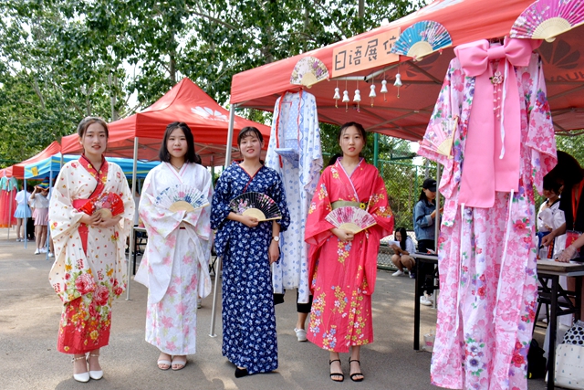 外国语学院“你好,世界—多国文化展”于5月19日-20日在校网球场举办。此次活动分“你好,世界”文化知识大讲堂、“遨游世界”异国风情展和“玩转世界”迷你互动游戏体验三个环节。“你好,世界”为大家介绍世界上的英语国家、日本、韩国、俄罗斯和西班牙等国家的历史文化和风土人情,带参与者领略一场别样的文化盛宴。“遨游世界”向参与者展示异国风情,邀请参与者欣赏汉服、和服、韩服、西班牙传统服饰弗拉明戈、俄罗斯特色服饰和英国传统服饰,其中传统服饰试穿项目的设置深受同学们的好评。“玩转世界”迷你互动游戏体验,让参与者在游戏中学习多国文化并品尝美食,日本传统美食寿司、韩国炒年糕、西班牙Tapas、俄罗斯紫皮巧克力等广受同学们的喜爱。同时展出的异国文化工艺品将俄罗斯套娃、日本晴雨娃娃、西班牙斗牛摆件等带入观众视野,展位负责人向同学们介绍工艺品的设计理念和核心文化以及精美的物品背后蕴藏的文化背景。通过文化展览帮助同学们学习了解外国文化知识,感受多国文化魅力,体会多国语言之美,点燃了学生们参加学校文化艺术周的热情,营造了良好的育人环境和浓厚的文化氛围。