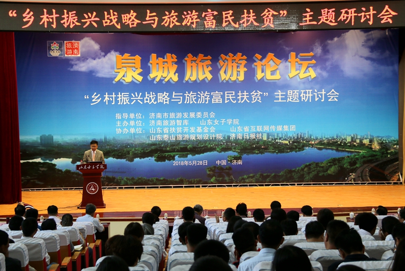 5月28日,由济南旅游智库和山东女子学院共同主办的“泉城旅游论坛”在学校图书馆二楼报告厅举行。本次论坛以“乡村振兴战略与旅游富民扶贫”为主题,来自国内的知名专家从政策解读到规划实施建设,全面剖析了“乡村振兴”和“旅游富民扶贫”的发展新路径,寻求全面提升乡村旅游的新途径,促进山东旅游业新旧动能转换。学校副校长刘正林,济南市旅游发展委员会主任郅良、副主任闫险峰出席会议,济南各县区旅游部门相关人员及学院师生代表300余人参加了会议。