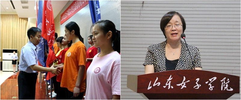 盛国军为学校“三下乡”社会实践团队授旗 党委副书记王淑霞作动员讲话