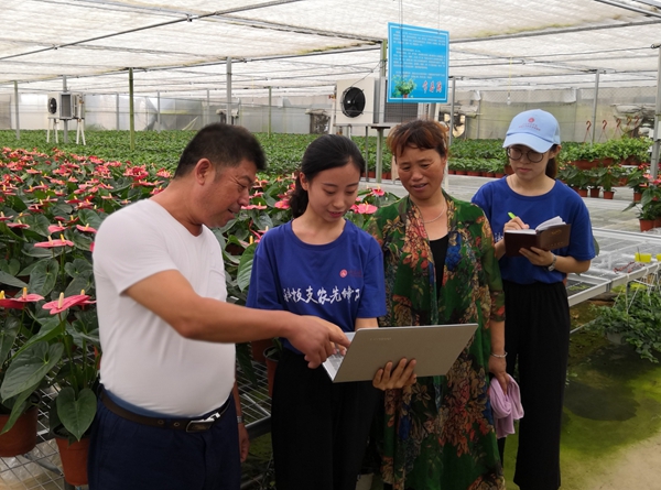 签约仪式后,贺兴利一行赴张夏街道看望慰问数据科学与计算机学院“E起筑梦”大学生暑期“三下乡”科技支农实践团。在详细了解相关工作后,贺兴利对实践队的工作给予充分肯定,勉励他们要充分利用所学专业知识,在扶贫脱贫攻坚战中破冰而行,为新时代青年大学生投身扶贫脱贫公益实践活动树立标榜,用实际行动践行社会主义核心价值观。