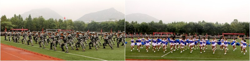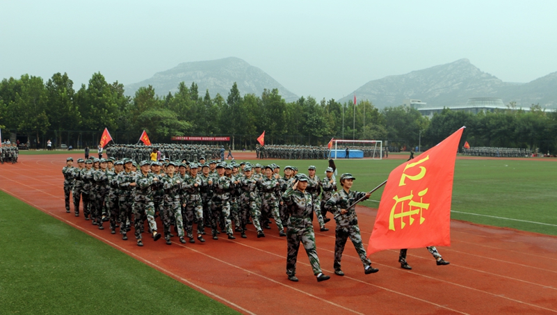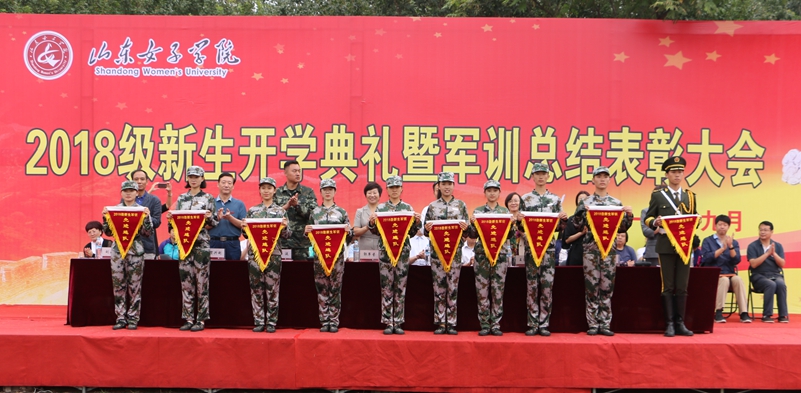 大会首先进行了隆重的升旗仪式,由优秀新生代表组成的英姿示范连承担了此次任务,在雄壮的国歌声中,五星红旗冉冉升起。分列式上,三十五个连队以响亮的口号、饱满的热情经过主席台,展现出女院学子自强不息、百折不挠的意志品质和求实创新、不断攀登的进取精神。英姿示范连带来的健康操表演,青春与激情舞动,活力与动感融合;男生连的军体拳表演身姿矫健,拳脚敏捷,动作整齐,沉着有力;礼仪操呈现着女院女性优雅端庄之仪态,仁义有礼之德行,文明修身之作为;《山东女子学院之歌》唱出了坤德含弘,薪火相传,至善尚美,孜孜不倦;教官带来的擒敌拳一招一式尽显威风,展示出军人的龙虎声威和铮铮铁骨。