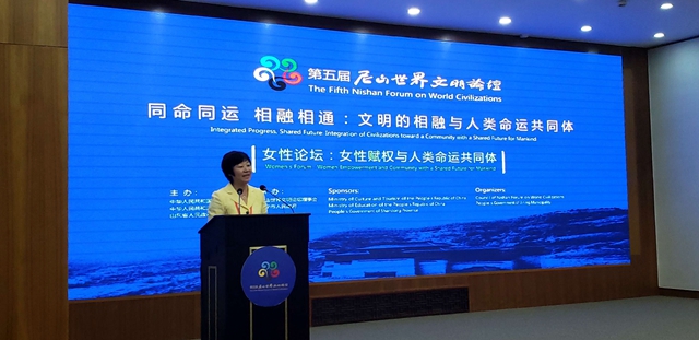 作为尼山世界文明论坛下的第二届尼山女性世界论坛,与尼山世界文明论坛同时开坛。女性分论坛的主题是“女性赋权与建设人类命运共同体”,是第一次从女性的视角审视与研讨构建人类命运共同体,对建设人类命运共同体的呼唤和推动具有重要的开创意义。陈至立亲临女性论坛,并发表了重要演讲《中国妇女政策与人类文明进步中的女性力量》;山东省委常委、统战部长邢善萍为论坛致辞,指出,省委、省政府认真贯彻男女平等基本国策和中央决策部署,为促进女性事业与经济社会同步协调发展提供强有力的保障,努力让每一位女性都有人生出彩和梦想成真的机会。