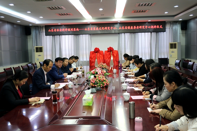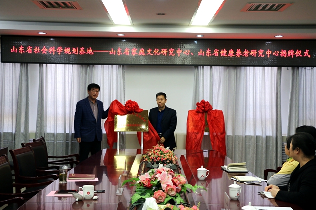 10月19日下午,学校在第三会议室举办山东省家庭文化研究中心和山东省健康养老研究中心揭牌仪式。山东省社会科学规划管理办公室主任杜福,学校校长盛国军、副校长刘正林出席仪式,学校科研处、社会与法学院负责人及两个研究中心的部分成员参加。刘正林主持揭牌仪式。