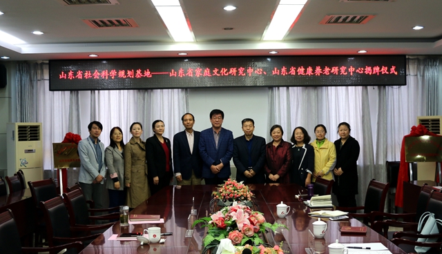 随后,杜福、盛国军共同为山东省健康养老研究中心和山东省家庭文化研究中心揭牌,与会者合影留念。