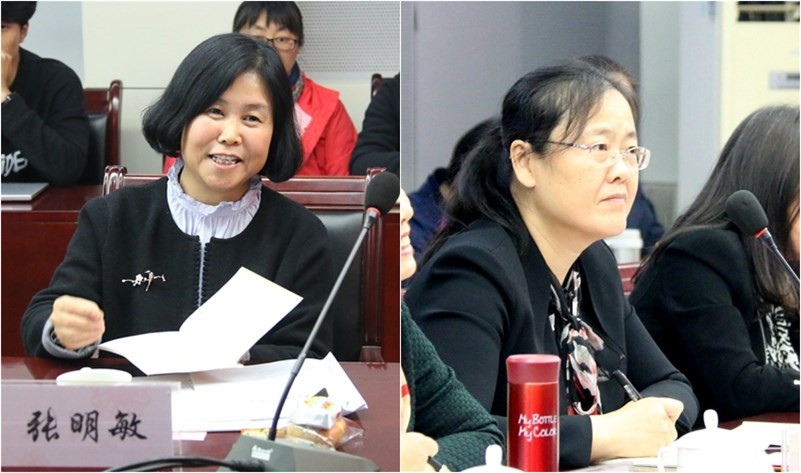 山东省人大内司委办公室副主任张明敏讨论发言 山东省妇联家庭和儿童工作部部长盛淑慧讨论发言