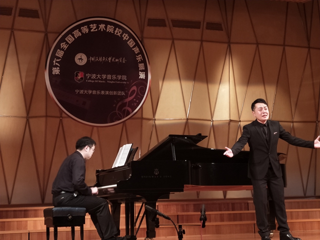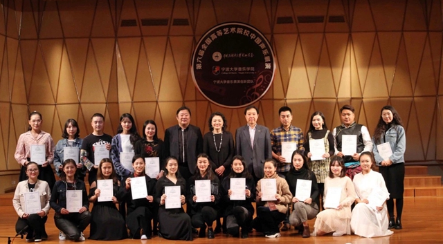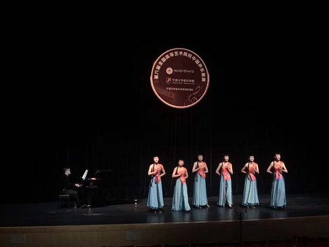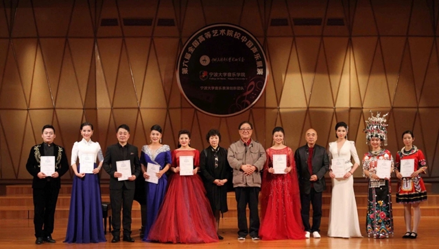 近日,第六届全国高等艺术院校中国声乐展演总决赛在宁波音乐厅圆满落幕。经过激烈角逐,我校音乐学院参赛师生分别获得一金一银的好成绩:青年教师秦利伟荣获第六届全国高等艺术院校中国声乐展演教师组金奖并参加了颁奖晚会的演出,由宋小霞院长、秦利伟老师指导的俏妹表演唱队荣获第六届全国高等艺术院校中国声乐展演本科组银奖。