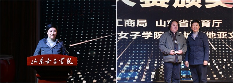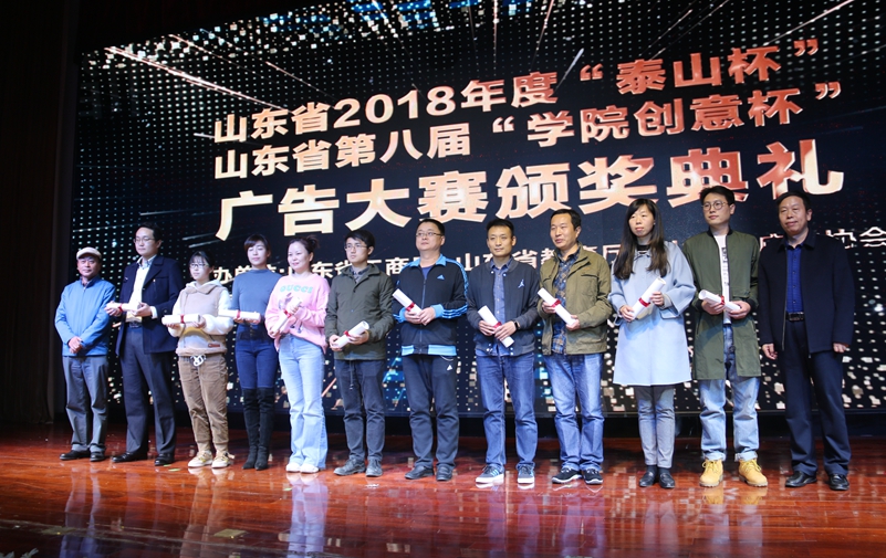 11月8日下午,山东省2018“泰山杯”、山东省第八届“学院创意杯”广告大赛颁奖典礼在我校成功举办。省政协常委、中国广告协会副会长、省广告协会会长王百忠,省广告协会副会长、山东工艺美术学院党委副书记苗登宇,省市场监管局广告处处长孙玉芹,我校校长盛国军、副校长侯素美出席典礼。省广告协会理事、兄弟院校获奖人员、艺术设计学院师生参加了典礼。