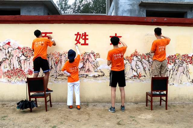“美丽乡村建设”志愿服务队,主要由学校艺术设计学院教师和学生组成,7月11日—7月18日赴省派“第一书记”帮扶村—菏泽市定陶区陈集镇保宁村,开展“青春建功新时代,丹青绘梦心向党”为主题的社会实践活动。 师生们充分发挥艺术设计专业特长,为当地村民送去艺术文化,圆满地完成了墙绘和支教的工作任务,得到了当地村民的一致认可和好评。当地一位学生家长说:“女院的大学生到村后,把大队部布置地特别漂亮,教孩子们画画、唱歌,还给我们带来了精彩的节目,我们心里特别高兴,这些大学生走的时候我家孩子都哭了。要是大学生年年都能来就好了”。