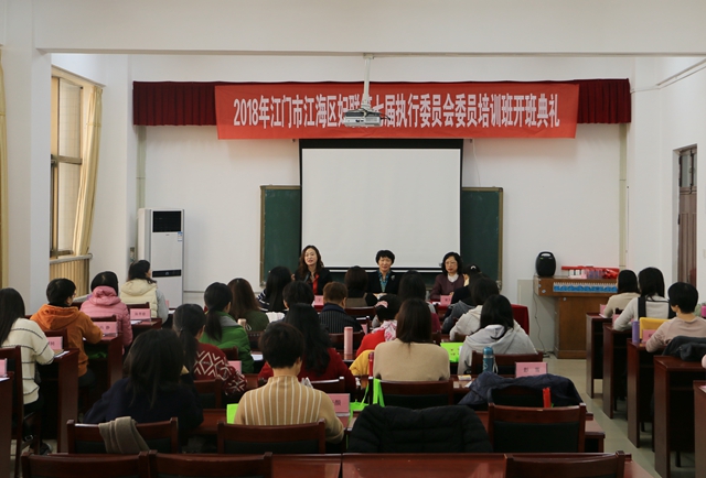 11月26日上午,广东江门市江海区妇联第七届执行委员会委员培训班在学校求新楼414教室举行了开班仪式,学校副校长侯素美出席开班仪式并致辞。开班仪式由继续教育学院院长于子云主持。