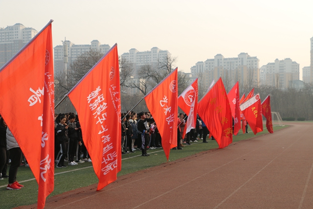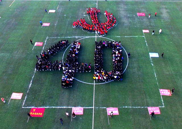 活动伊始,近千名同学有组织地拼成巨型党徽和“40”图案,以此纪念改革开放四十周年,表达出学校学生不忘初心跟党走的坚定信心和决心。健身长跑活动在王淑霞的致辞中拉开帷幕。各学院学生方阵依次有序出场,领跑的学生手持院旗,按既定路线围绕校园展开长跑,队伍整齐充满活力,飘扬着的旗帜展现着学校学生团结进取、努力拼搏的精神面貌。