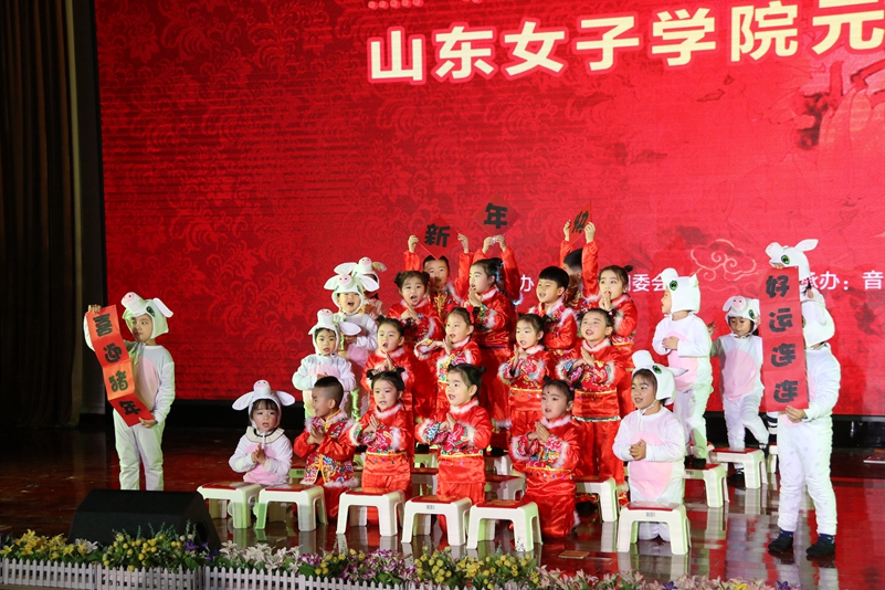 联欢会在大学生艺术团带来的鼓乐《中国龙》中拉开帷幕,奏响了新年的乐章。《春耕小调》《江山》《我爱你中国》《唱支山歌给党听》等节目,抒发了广大师生热爱祖国,坚定信念跟党走的情怀。山东快书《再创辉煌》赞扬了学校深化综合改革、全体教职工团结奋进取得的可喜成绩,坚定了师生继往开来的决心和信心,表达了师生对学校美好明天的祝福。曼妙的舞姿,混合着时代的气息,拉丁舞《恰恰巴》让我们领略了现代舞的魅力。舞蹈《傣家的女儿傣家的雨》描绘了傣族人民勤劳勇敢,携手开创新生活的美好画面。学校附属幼儿园的小朋友为大家送来了新年的祝福《福气娃娃闹新春》,把晚会推向高潮。