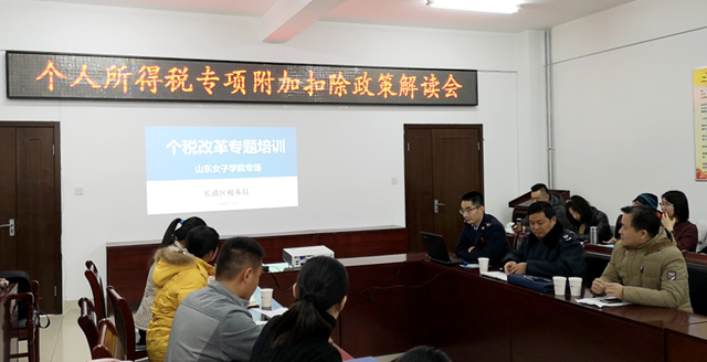 为更好地传达落实2019年个人所得税专项附加扣除政策,做好教职工个人所得税专项附加扣除工作,12月28日下午,学校邀请长清区税务局所长李绍新、科长曹强、科长刘腾来校就相关政策进行了详细解读。各部门相关工作人员参加会议,会议由财务处处长迟罗绮主持。