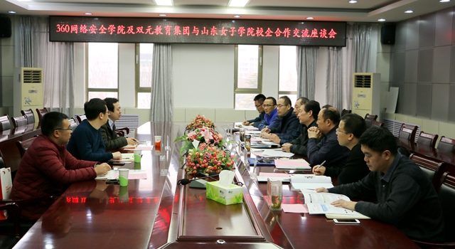 近日,学校与360网络安全学院及双元教育集团举行了校企合作交流座谈会。学校副校长贺兴利,360网络安全学院校企合作部主任吕沐阳、双元教育集团总经理刘虎城出席会议。学校科技产业管理处、教务处、招生就业处、创新创业学院和数据科学与计算机学院相关负责人参加了会议。