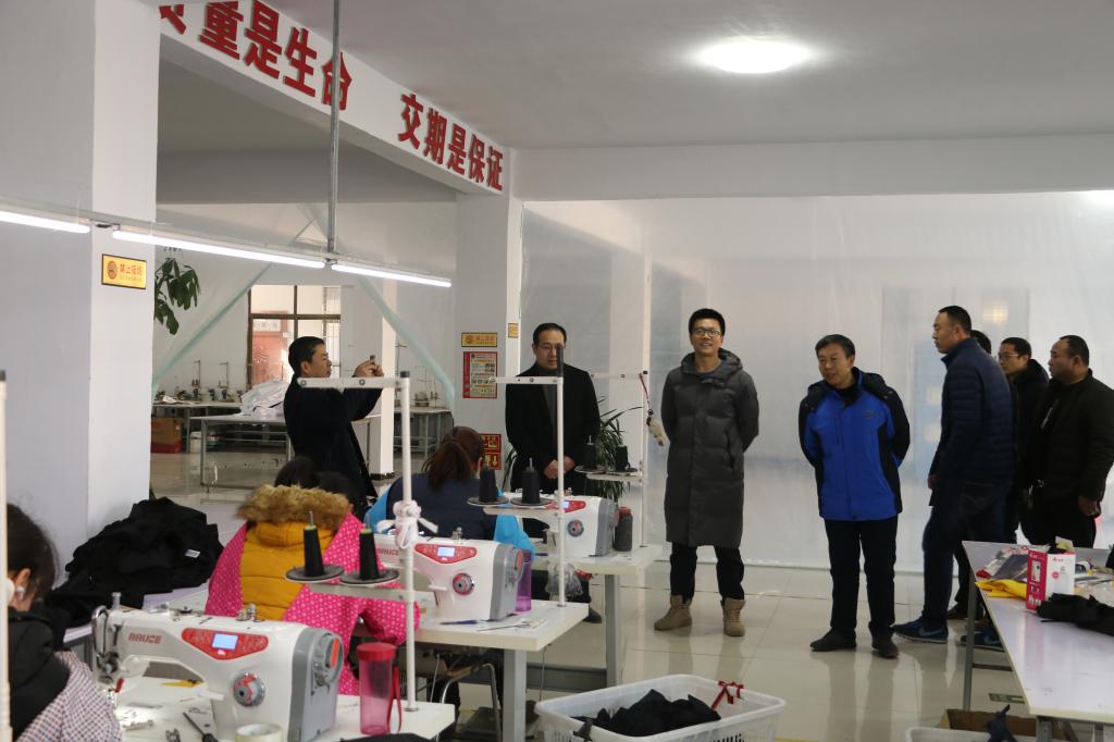 盛国军一行实地调研台楼村扶贫项目——凯杰服饰有限公司精准扶贫服装厂