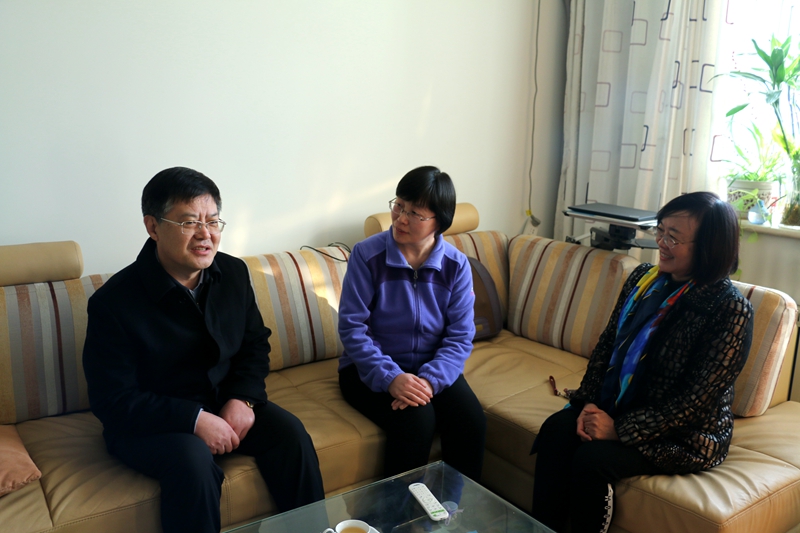 在两位老师家中,白皓与王淑霞关切询问她们的工作、生活情况,并分别代表省委教育工委、省教育厅和学校,向她们致以诚挚的节日问候,让老师们感受到了组织的关怀与温暖。章艳丽、董小菲老师感谢省委教育工委、省教育厅与学校领导的亲切关怀,表示今后将继续努力,积极为教育事业贡献力量。