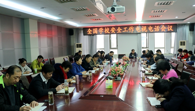 2月28日下午,全国学校安全工作电视电话会议在北京召开,我校在办公楼第三会议室设分会场。校长盛国军、副校长侯素美,党委院长办公室、宣传部、学生工作处、保卫处、教务处、网络信息中心、资产管理处、基建处、后勤管理处主要负责人及各院部党政主要负责人参加会议。