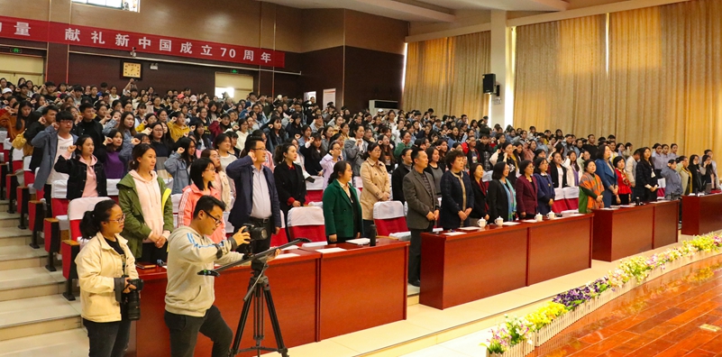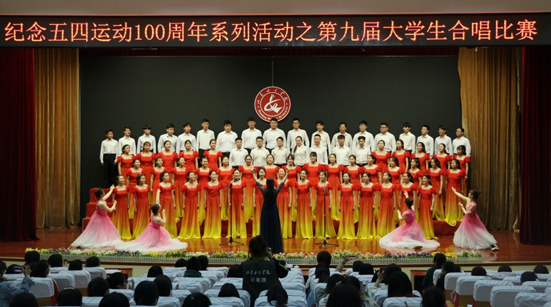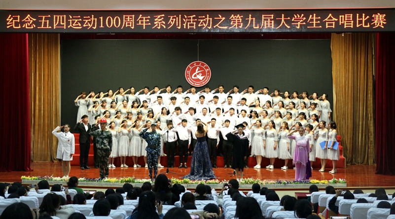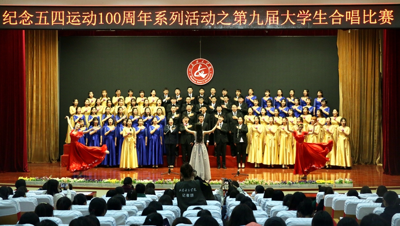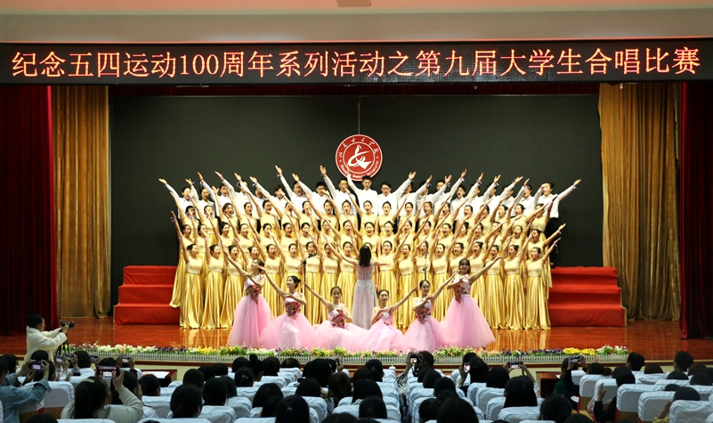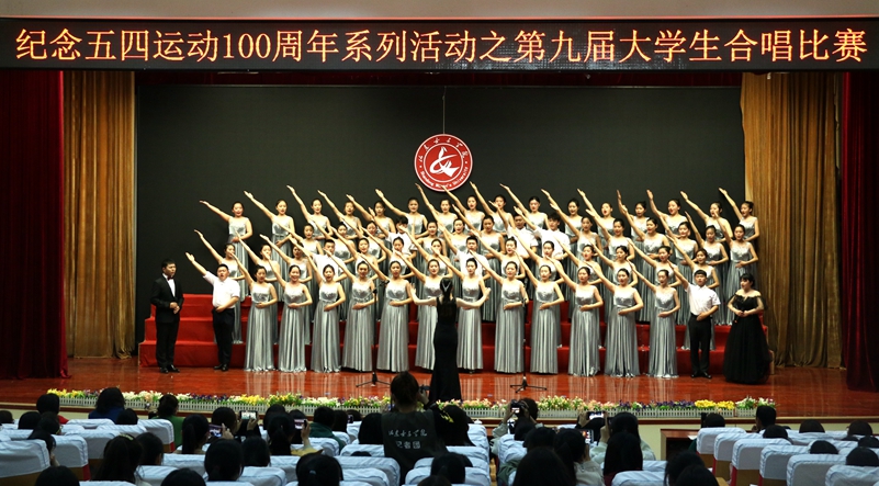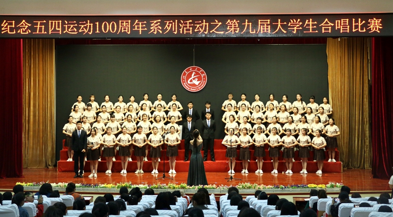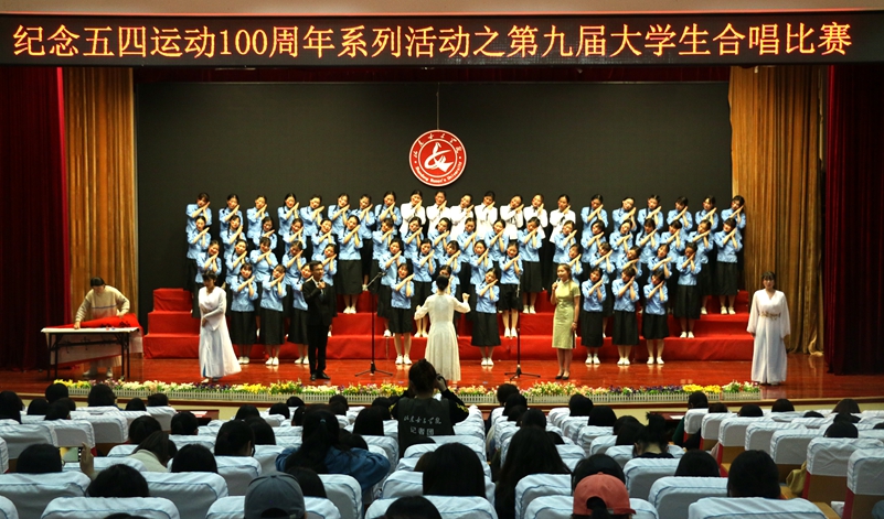 值五四运动100周年即将到来之际,4月28日下午,学校第九届大学生合唱比赛在图书馆二楼报告厅隆重举行,纪念五四运动100周年,向新中国成立70周年献礼。学校党委副书记王淑霞、纪委书记黄晓彦出席活动,宣传部、学生工作部(处)、工会、团委等相关部门负责同志,各学院分管学生工作的党总支书记、团总支书记、辅导员以及来自各学院的学生共同观看比赛。
