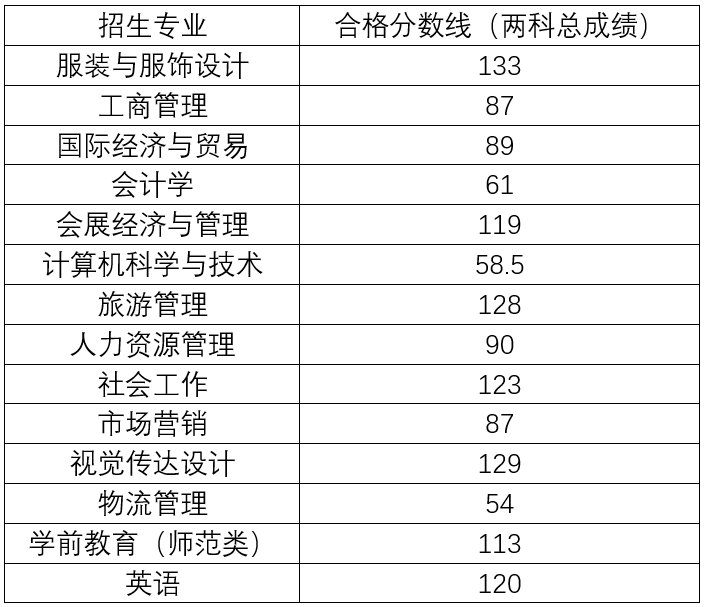 二、各专业合格分数线