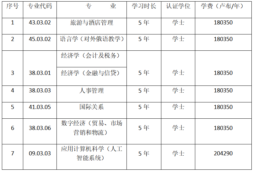 本科招生专业设置(五年一贯制 俄语授课)