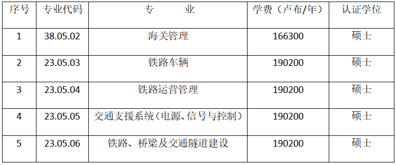 本硕连读招生专业设置(六年一贯制 俄语授课)