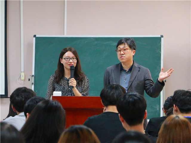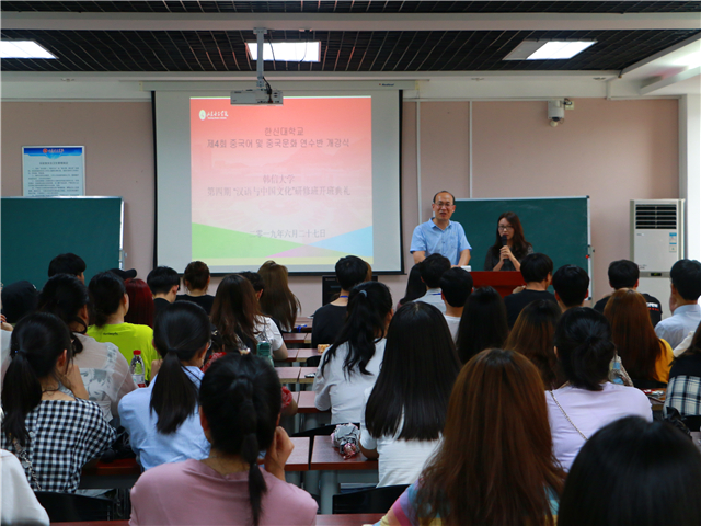 下午,国际交流合作处在求实楼509教室为韩信大学的师生举行了开班仪式。首先,国际交流合作处负责人代表学校对韩信大学师生的到来表示热烈欢迎,并回顾了两校的友好合作交流。随后向参加仪式的师生介绍了此次研修班的前期准备工作、开设课程及授课教师的情况,以及济南市和学校的部分特色,并对教学、生活、外出管理提出了要求。韩信大学带队教师崔敏成教授对同学们研修期间的生活和学习提出了要求。最后,韩国研修生及我校志愿者现场结对,气氛友好热烈。