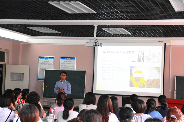 讲座中,冯教授还向教师介绍了如何搜集文献、建立规范数据库,以自己的论文为例,详细介绍了论文写作的方法与体会,总结了论文发表的相关信息和经验,还强调了恪守学术道德规范以及国家意识形态工作要求的重要性。