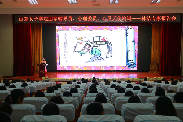 本次报告会邀请济南市第二精神卫生中心专家林洁主任主讲,王秀芳主任担任助讲。林洁主任以“关爱情绪,管理压力”为主题,从抑郁症概念等基本知识入手,延伸到当下大学生群体普遍存在的心理问题,如:大一新生适应问题、大三、大四择业问题以及大学生人际交往问题等,并结合丰富的门诊和咨询案例,为同学们深入浅出地讲解了情绪管理在我们生活中的作用,以及如何更好地成为情绪的主人。最后,她与王秀芳主任共同解答了同学们现场提出的问题,使同学们受益匪浅。